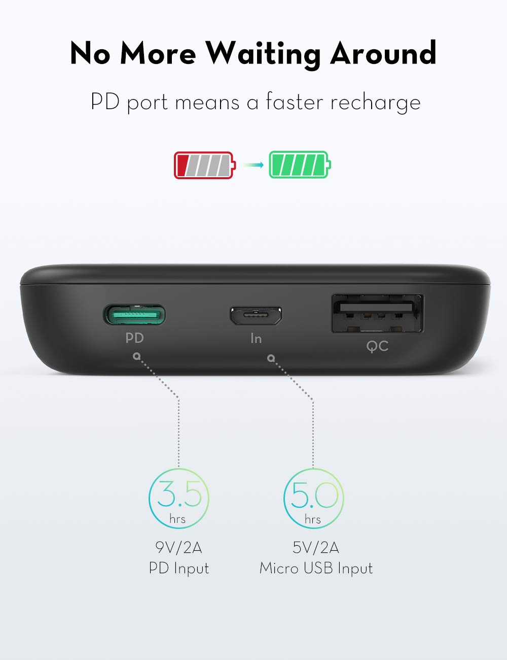 - No More Waiting Around: PD input and output means the power bank itself only needs 3 hours and 16 minutes to fully recharge from 0%.