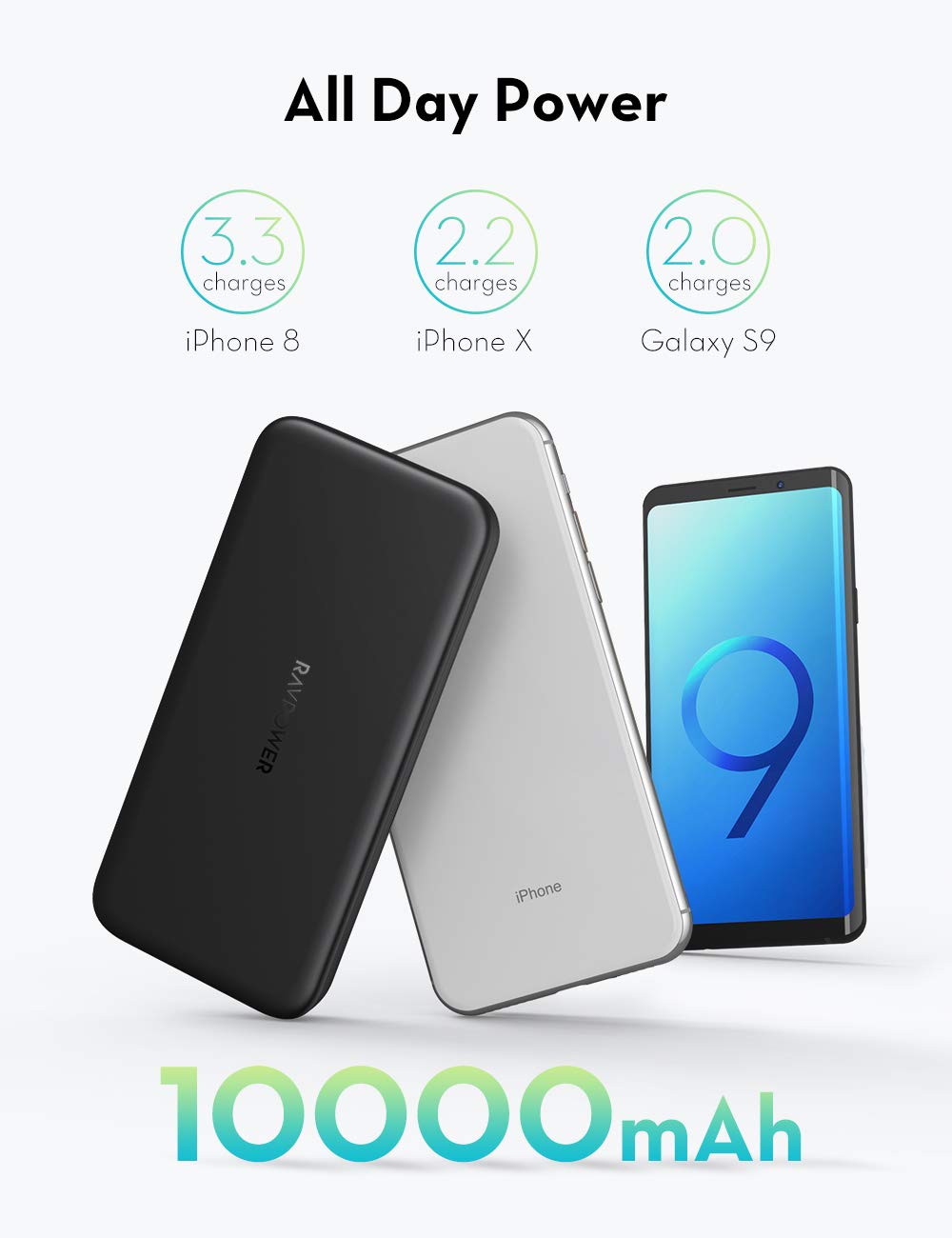 - All Day Power: 10000mAh battery supports fully charging an iPhone X twice so you never miss a moment