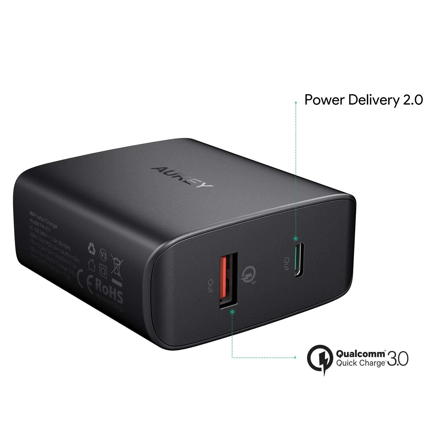 AUKEY USB C Charger with 30W Power Delivery 2.0 & 18W Quick Charge 3.0 – Black – PA-Y11