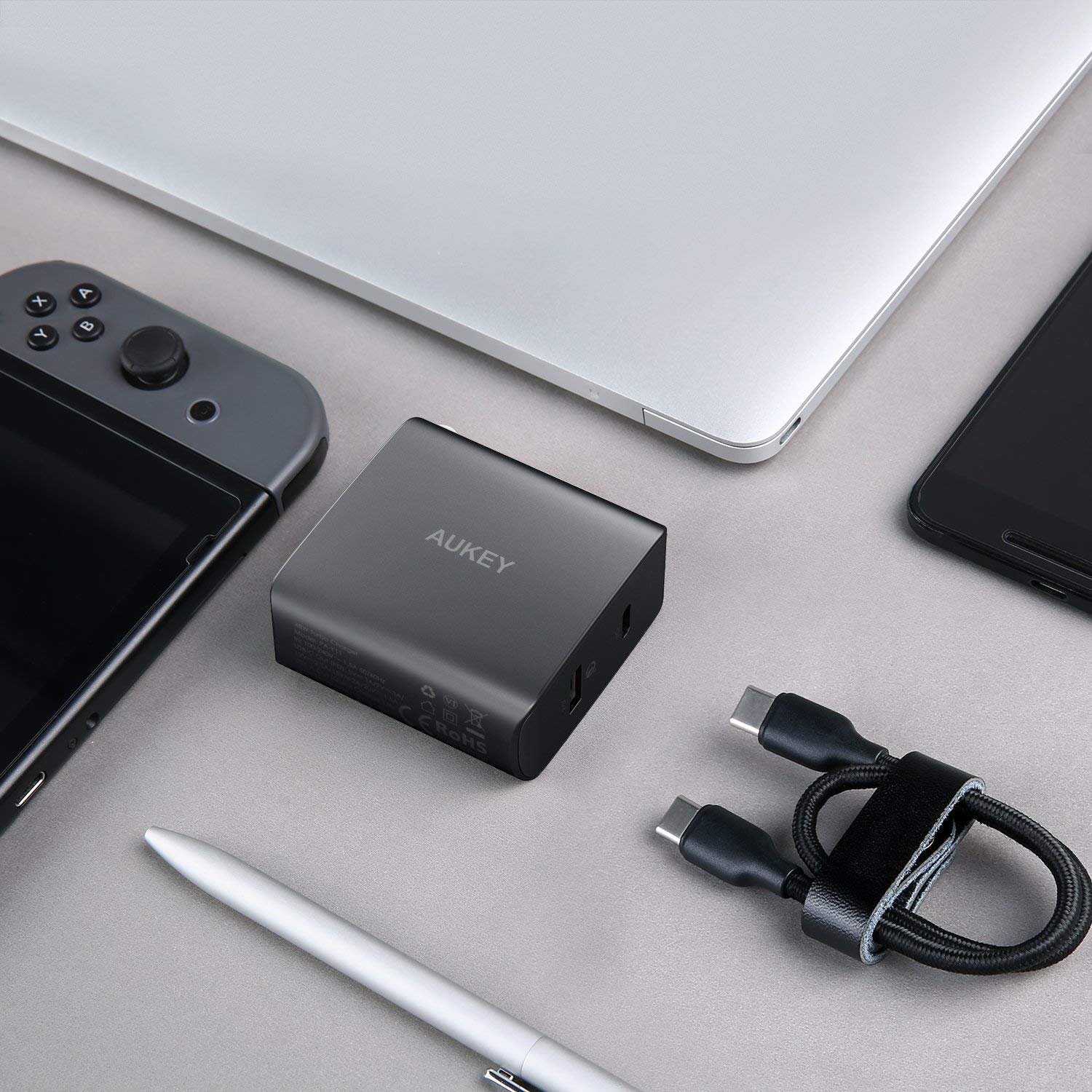 2 Port USB C Charger by Aukey allows you to charger your iPhone & iPad at upto 30W of Charging Speeds & your Android Phones at 18W.