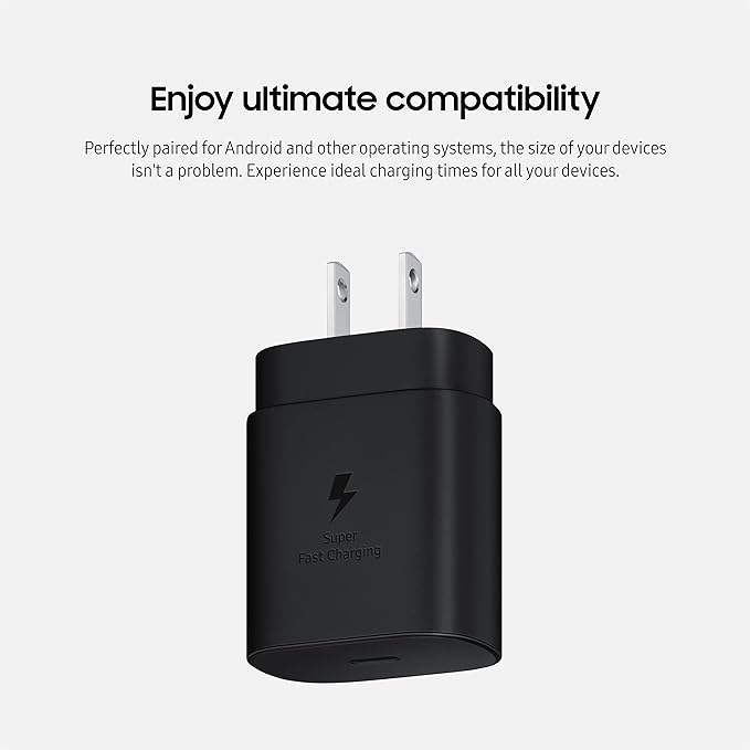 Give your devices the powerful charging support they deserve. The Wall Charger for Super Fast Charging (25W) provides Super Fast Charging at up to 25W for capable devices. Use the Wall Charger with an official Samsung Type C to Type C charging cable for optimum results.