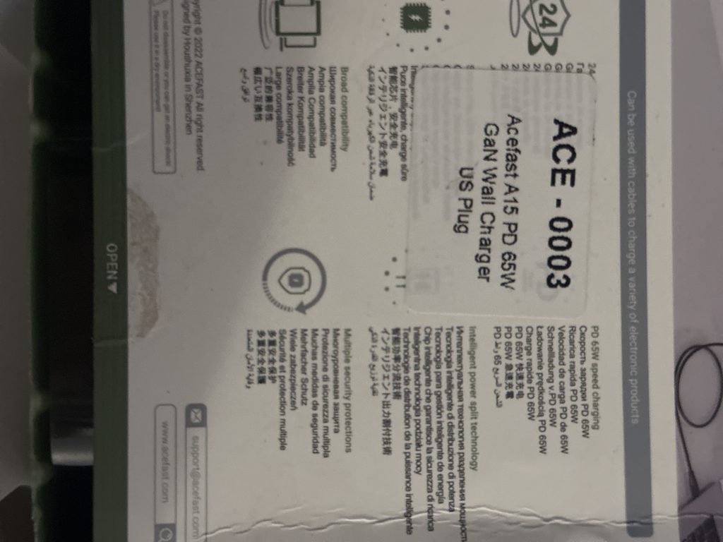 Acefast PD 65W GaN Fast Charge Wall Charger 3-port charger Black – Us for Fast Charging USB C Laptops. ACEFAST PD65W USB C1 port offers up to 65W Power Delivery 3.0 fast charging for MacBook Pro 13” fully charging in just 2 hours.