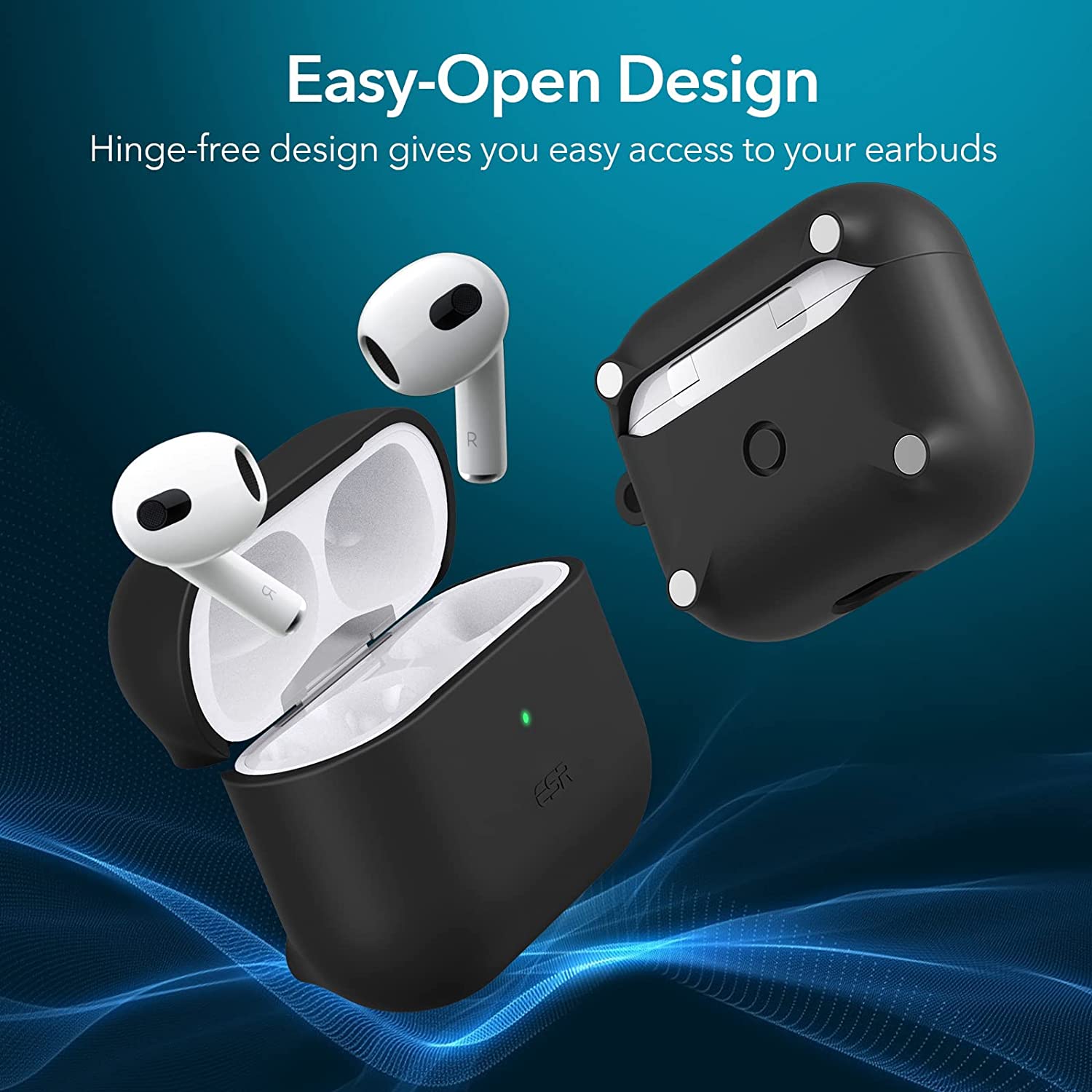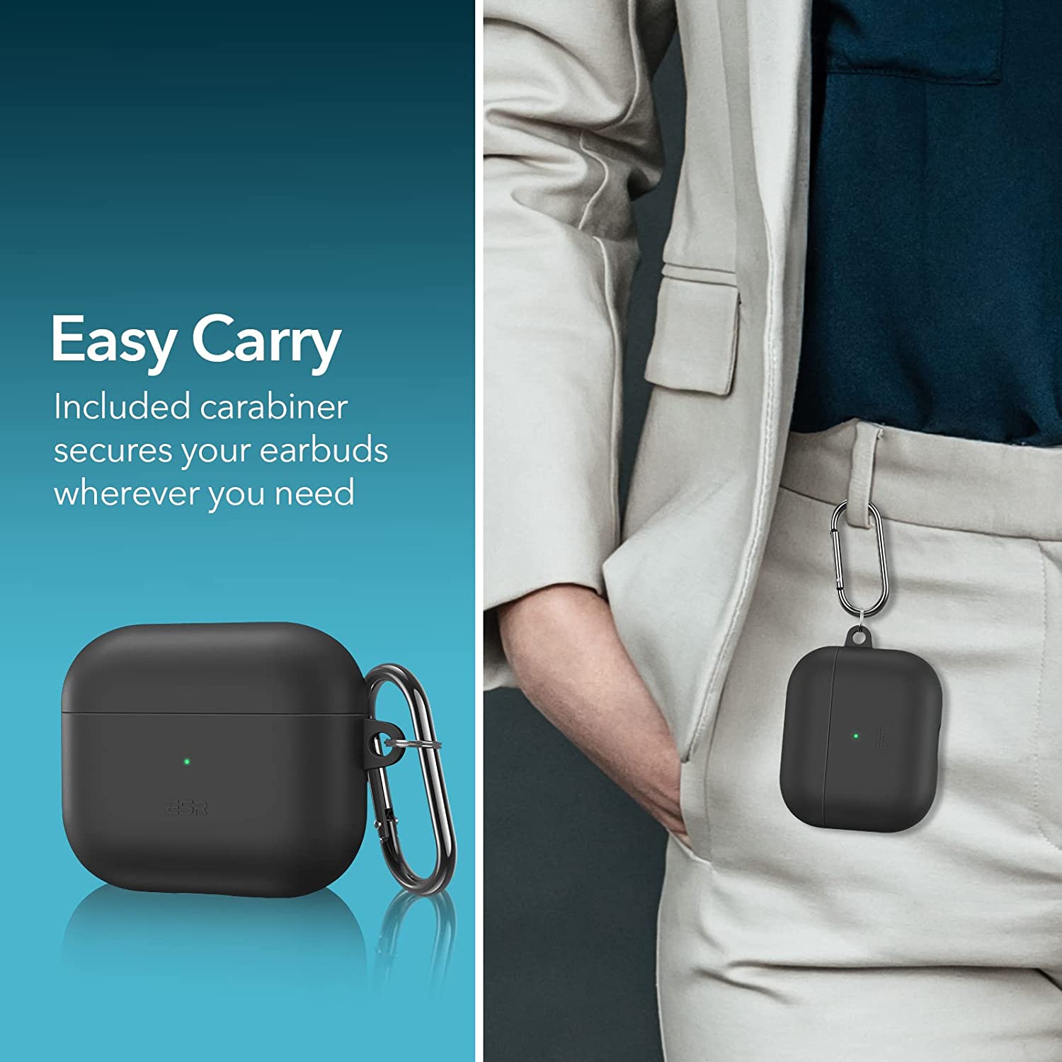 Airpods 3 MagSafe Halolock Soft Case by ESR Silicone Case, Hybrid Protective Case with Carabiner, Wireless Charging MagSafe Compatible – Black