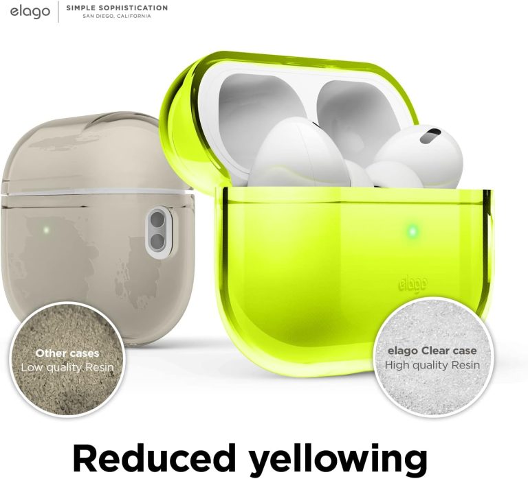 Airpods Pro 2022 elago Clear Case solves a basic problem. MOST COMPLAINTS ABOUT clear cases are that the color fades or the case is yellows over time. Our cases DO NOT FADE and the COLOR ALWAYS SHINES! As the case is made from thermoplastic polyurethane (TPU), the yellowing effect takes longer with continued use.