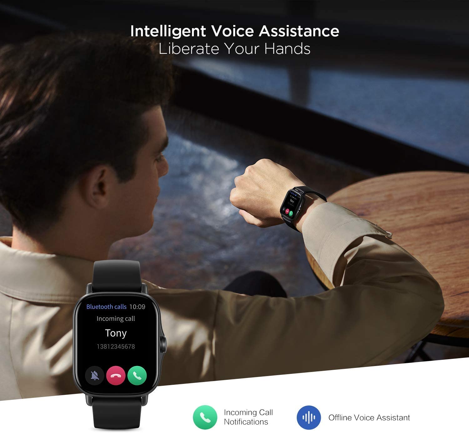 Liberate Your HandsYou can perform voice operations on your watch, such as selecting a sports mode or opening the heart rate monitoring, without internet access with the offline voice control feature. |