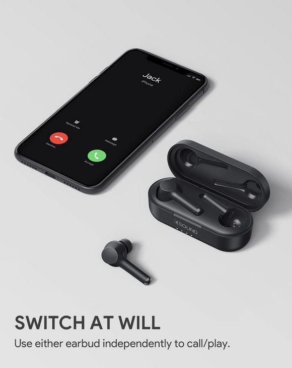 With built-in mic in each earbud, you can use a single earbud for working or use the pair to enjoy music alone or share with a loved one.