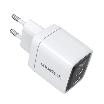 Upgrade your charging game with the Choetech PD6051 2x USB-C PD 35W GaN Wall Charger with Display. This best quality wall charger features advanced GaN technology for a compact design and efficient power delivery. With dual USB-C ports, it supports fast charging for multiple devices simultaneously. The built-in display keeps you informed of the charging status, ensuring your devices are powered up safely and quickly. Ideal for home, office, or travel, the Choetech PD6051 combines innovation, reliability, and convenience in one sleek package.