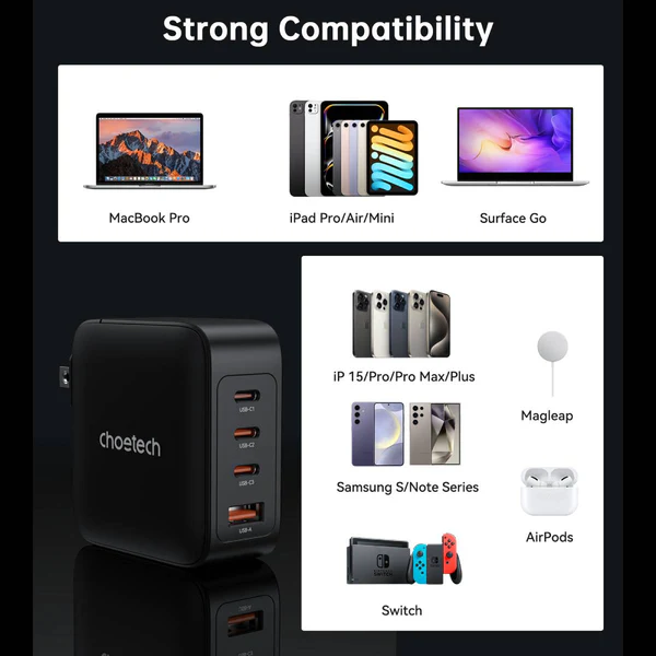 Choetech PD3016 GaN 140W PD Fast Charger – Black – GC