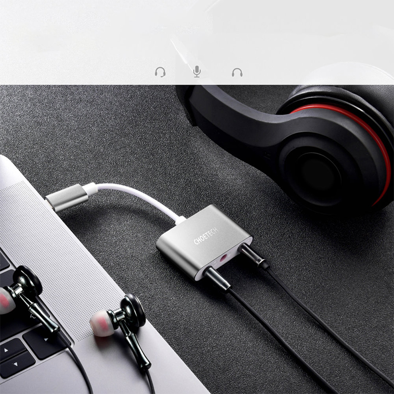 CHOETECH USB C Audio Adapter With Microphone Jack – Grey – A02