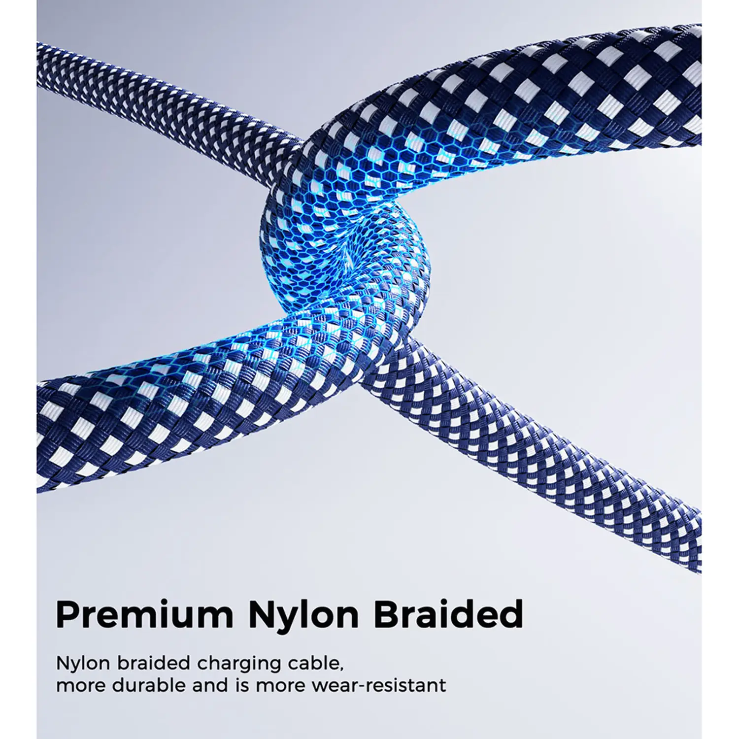 The cable features a magnetic interface for effortless one-hand connection and improved convenience, reducing wear on ports and simplifying device placement.