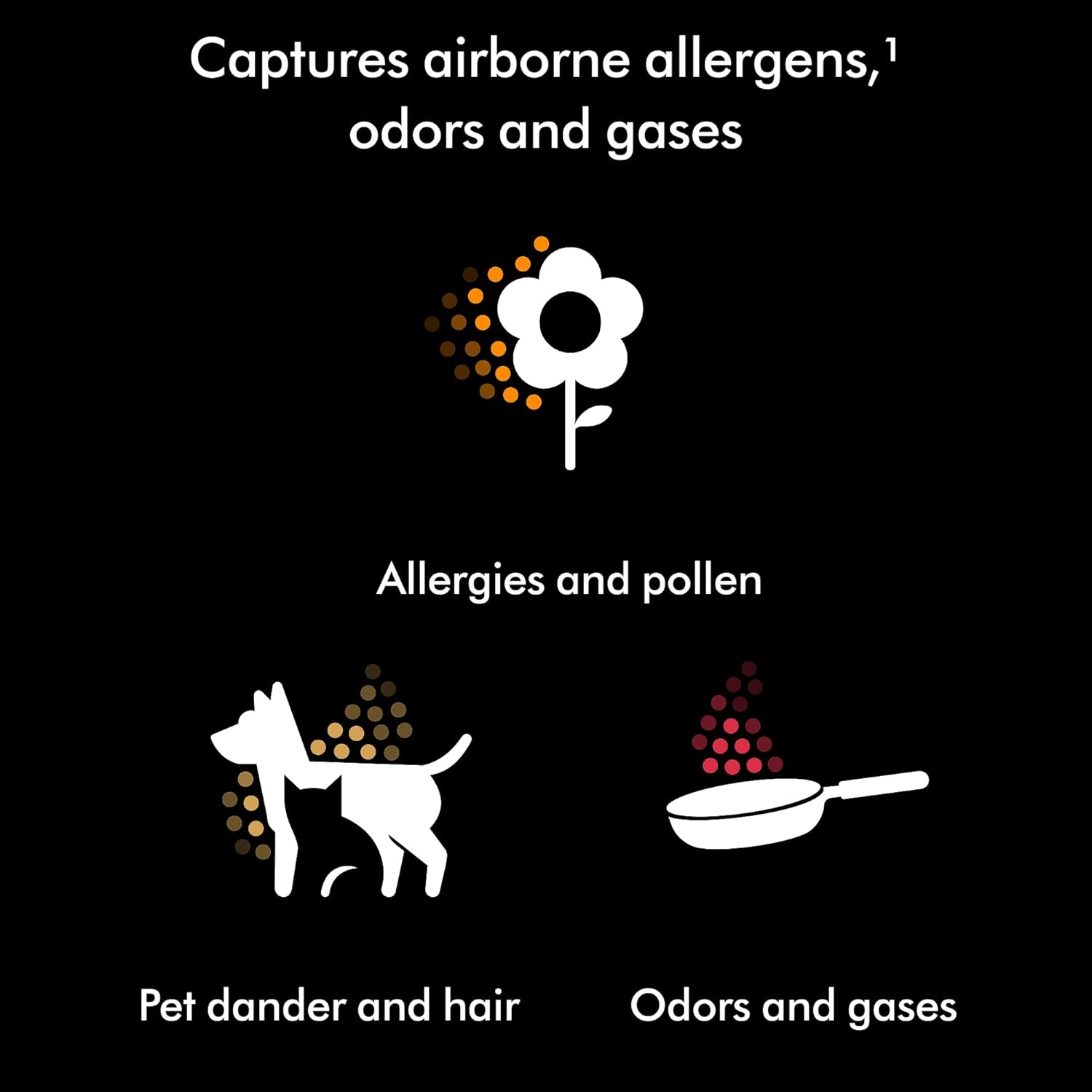 - The 360° Activated Carbon filter removes pet and cooking odors,⁴ and even gases such as NO₂.² Traps airborne pollutants on a highly porous surface, capturing unpleasant smells and harmful gases.²