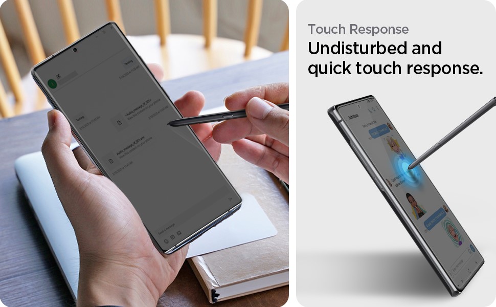 SPIGEN Neo Flex HD for the Samsung Galaxy Note 20 is a set of 2 Screen Protectors made with Flexible Thermoplastic Polyurethane Film (TPU). Say no to scratches, rainbow effects and bubbles! Neo Flex HD is self-healing and easily applied with Wet installation via included spray. Simply give the Neo Flex HD a few spritz of its magic and within 24 hours you will find your screen clear as new. Its wet application ensures a strong adhesion and a bubble-free surface. Neo Flex does not affect the touch sensitivity of the screen and is in-screen Finger Print Sensor Compatible.