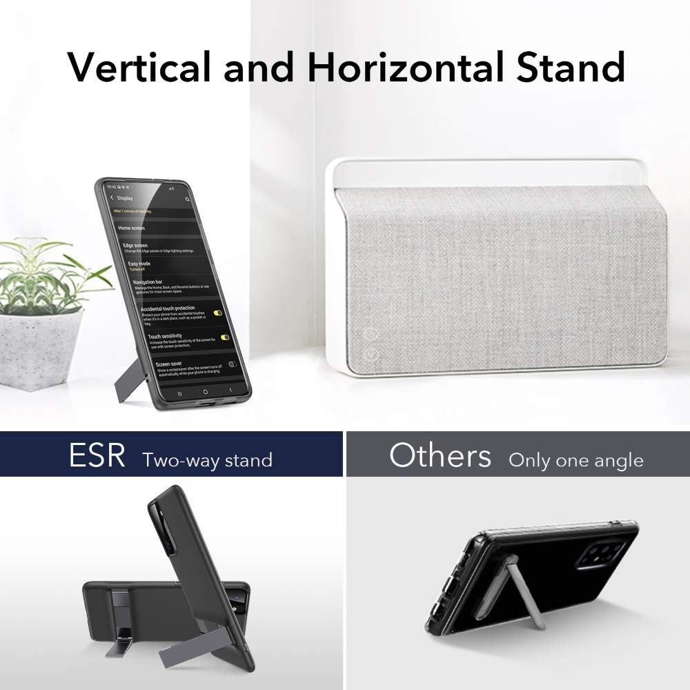- ESR PATENTED DESIGN – The unique kickstand is freely adjustable up to 60 degrees, giving you the right angle for any situation.