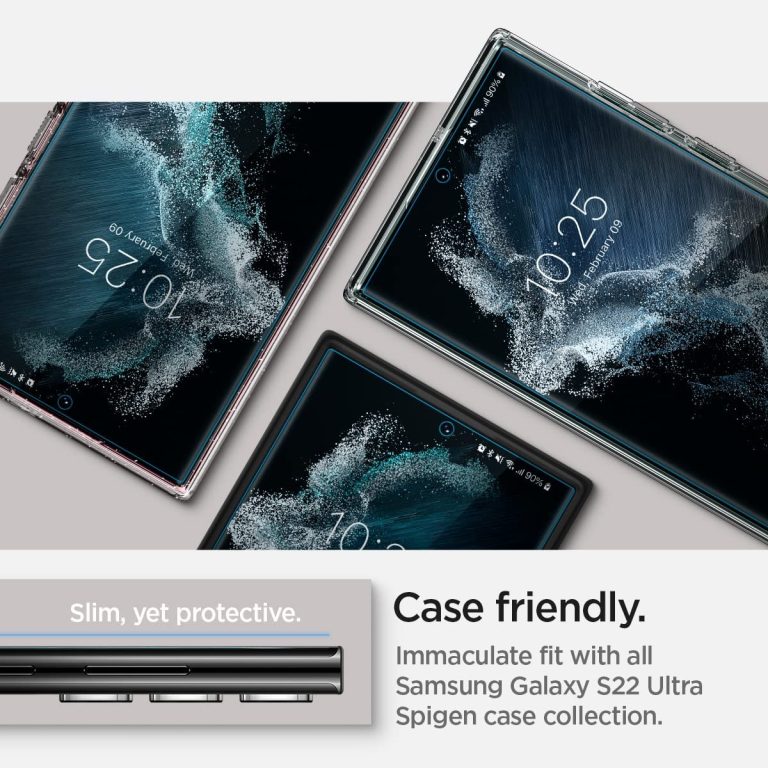 SPIGEN Neo Flex HD for the Samsung Galaxy S22 Ultra is a set of 2 Screen Protectors made with Flexible Thermoplastic Polyurethane Film (TPU). Say no to scratches, rainbow effects and bubbles! Neo Flex HD is self-healing and easily applied with Wet installation via included spray. Simply give the Neo Flex HD a few spritz of its magic and within 24 hours you will find your screen clear as new. Its wet application ensures a strong adhesion and a bubble-free surface. Neo Flex does not affect the touch sensitivity of the screen and is in-screen Finger Print Sensor Compatible.