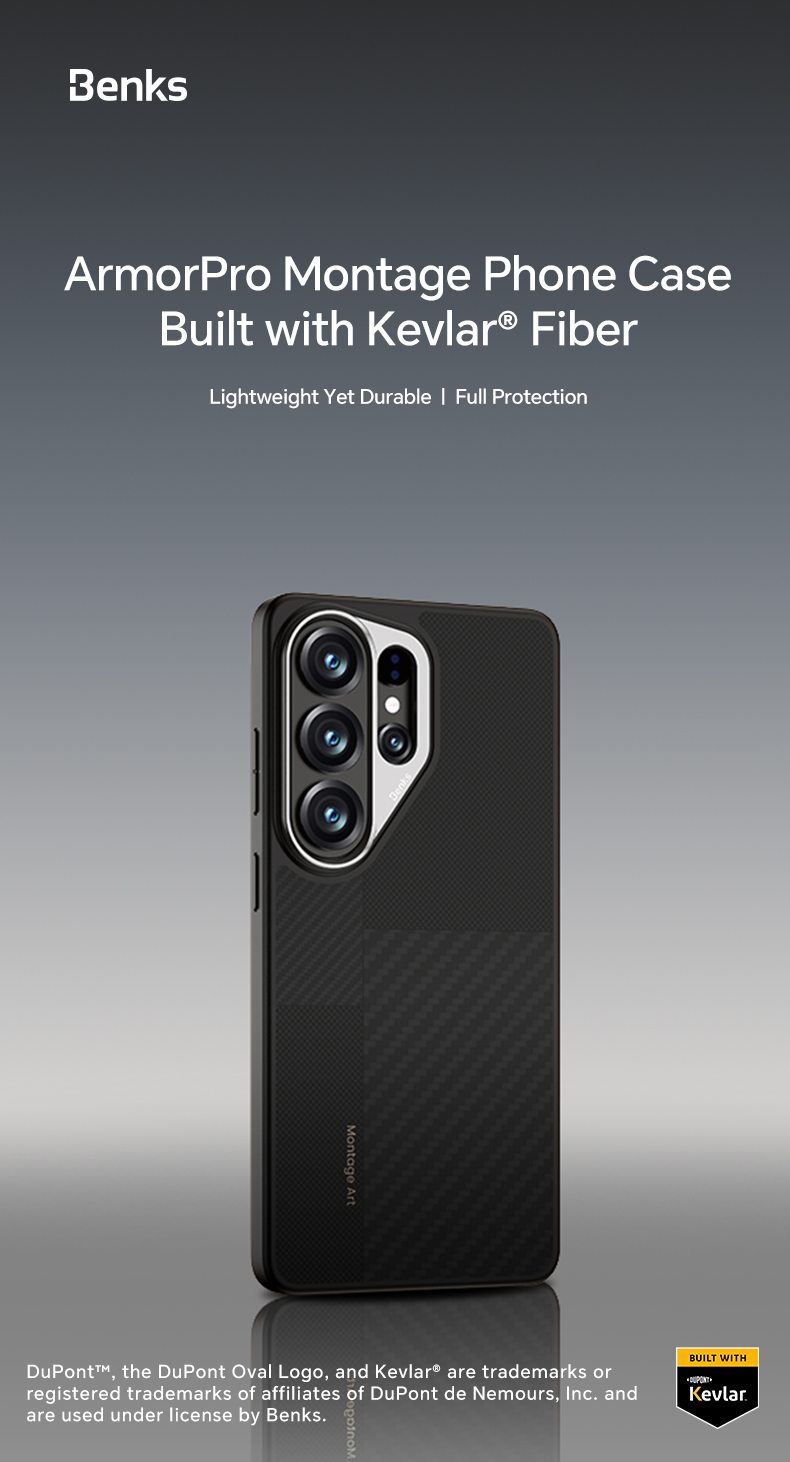 Made with 600D and 1500D DuPont™ Kevlar® fiber, Benks Montage ArmorAir Case offers refined durability and minimalistic style for your Samsung Galaxy S26 Ultra
