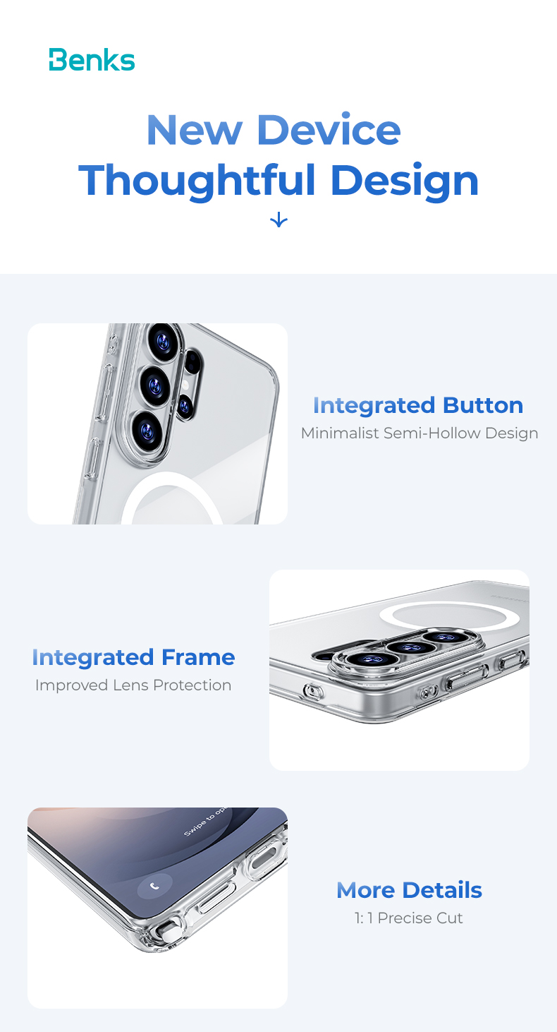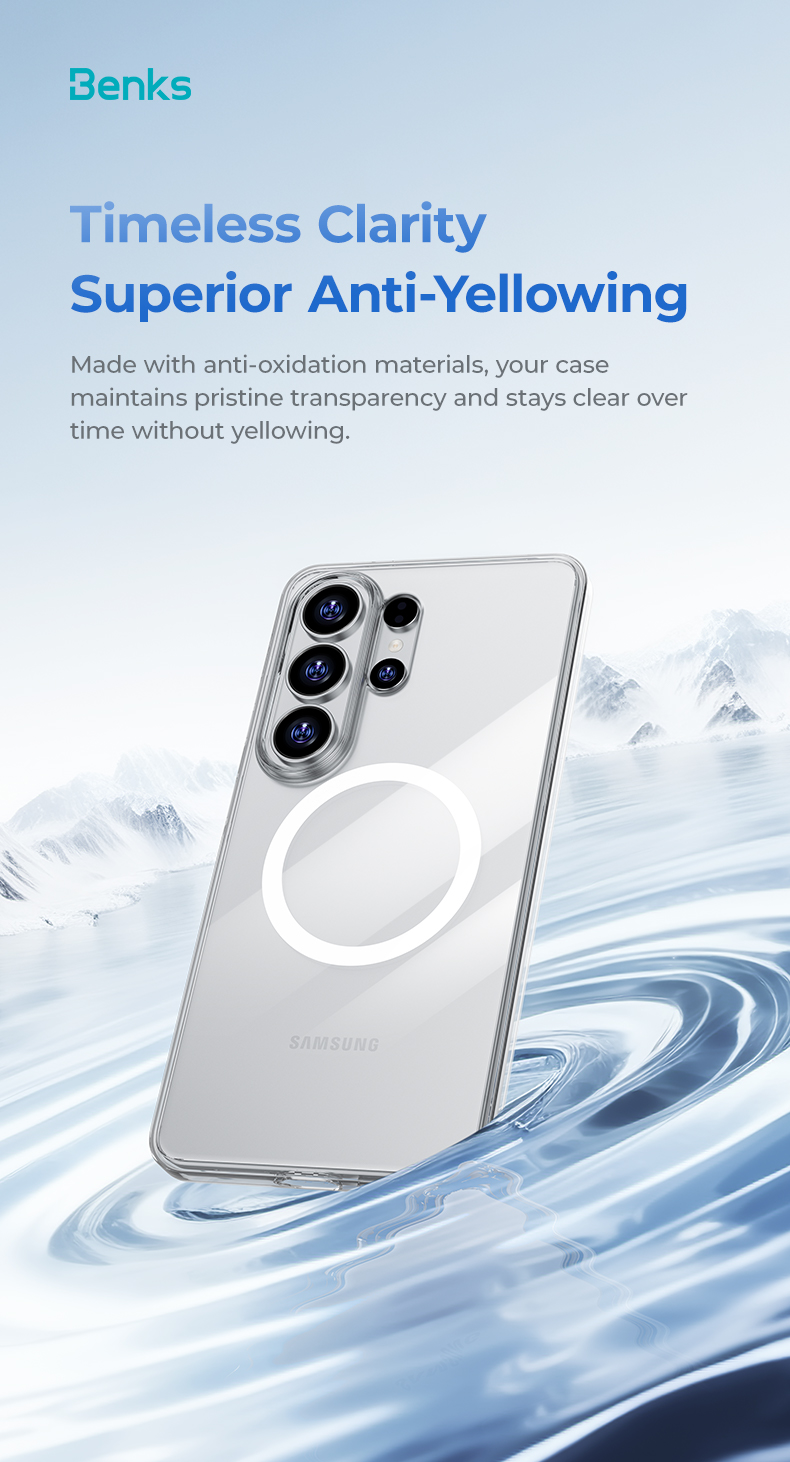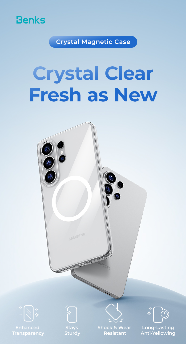 Protect your Galaxy S26 Ultra with Benks Crystal Magnetic Phone Case. Extremely protective and impact-absorbing without compromising the beauty of your phone.