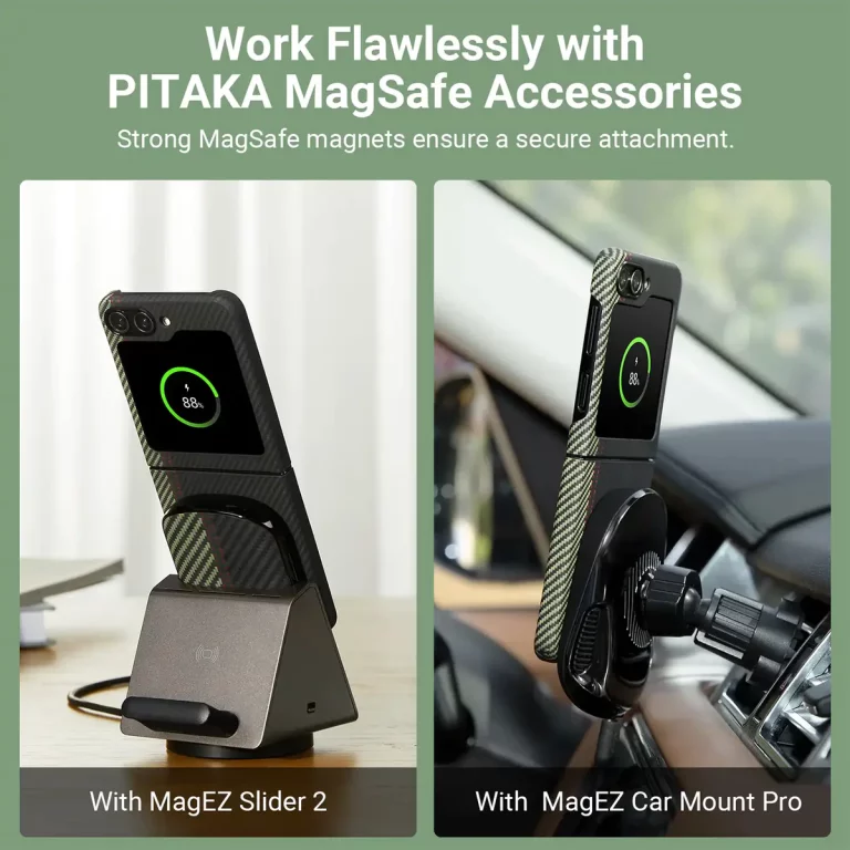 - The Flip5 case has perfectly aligned magnets that attach to the MagSafe compatible MagEZ Car Mount Pro to ensure stable and fast wireless charging while driving. And you can also charge your phone on any Qi wireless chargers or charge other devices using reverse wireless charging on the phone since the case is so thin.