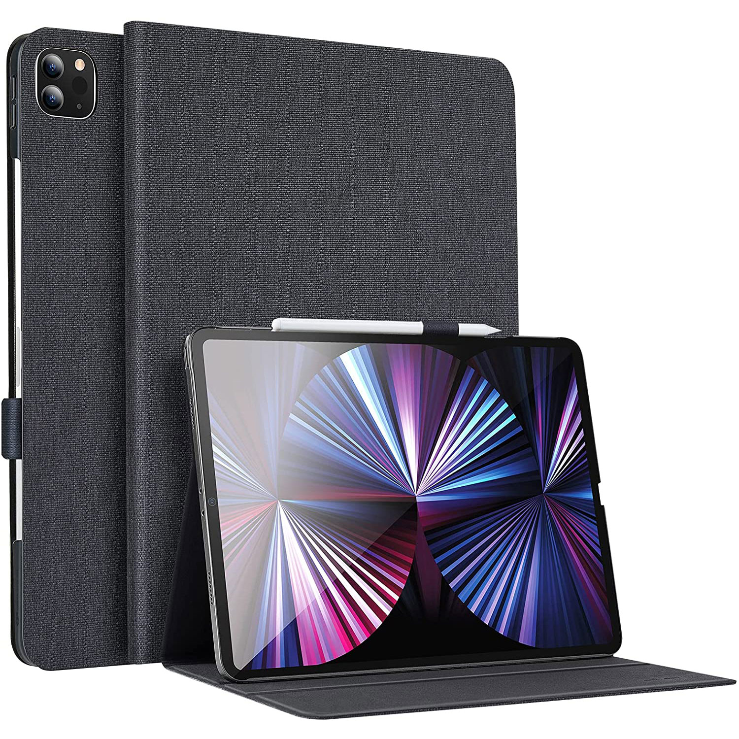 iPad Pro 11 Inch 2021 Urban Premium, Book Cover Design, Auto Sleep and Wake, Multi Angle Viewing Stand – Charcoal
