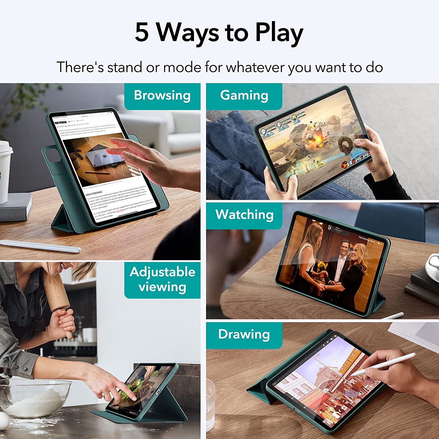 iPad Air 5 2022 Rebound Hybrid Case 360 comes with Detachable Magnetic Cover: keep your screen covered, fold it up into a stand with viewing, writing, and portrait modes, or remove it completely for better ergonomics while gaming.