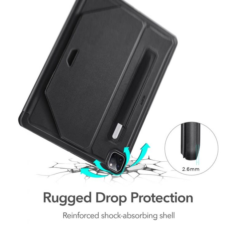 iPad Pro 12.9″ 2021 Sentry Stand Case by ESR comes with Adjustable magnetic kickstand with 9 convenient angles to choose from. Powerful magnets keep stand in place wherever life takes you.
