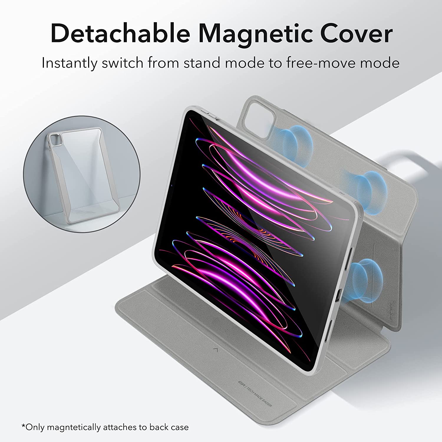 iPad Pro 12.9" 2022 / 2021 Rebound 360 Case ESR with Pencil Holder, Detachable Magnetic Cover, Vertical Stand - Silver Gray - BIS