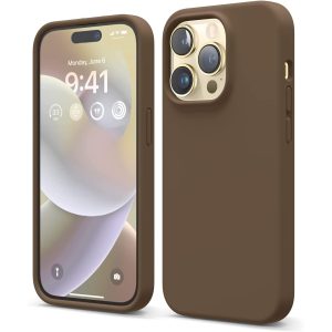 iPhone 14 Pro Liquid Silicon Case by elago Full Body Protective Cover, Shockproof, Slim Phone Case, Anti-Scratch Soft Microfiber Lining – Brown