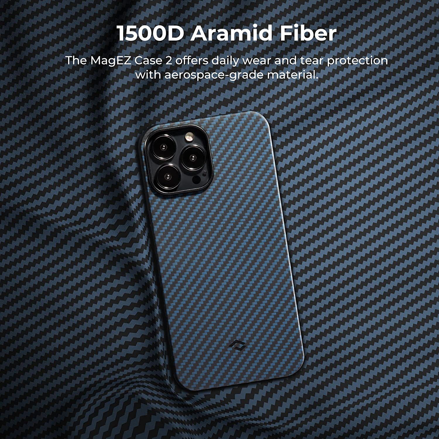 iPhone 13 Pro Max MagEZ Case 2 MagSafe Compatible Carbon Fiber Magnetic Case by PITAKA – Black / Blue Twill