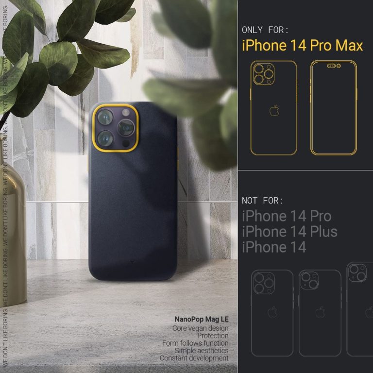 iPhone 14 Pro Max NanoPop Mag Leather Edition Dual tone Case comes with Integrated magnets compatible with MagSafe chargers will keep your device secure and aligned. PU vegan leather exterior and suede interior provides everyday protection and perfect snuggle fit for for iPhone 14 Pro Max.