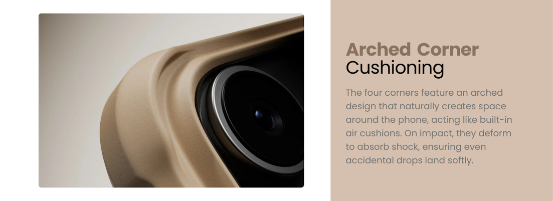 Military-grade standards met: engineered to protect from drops (≈2.4 m) thanks to arched-corner cushioning that helps absorb impact. -