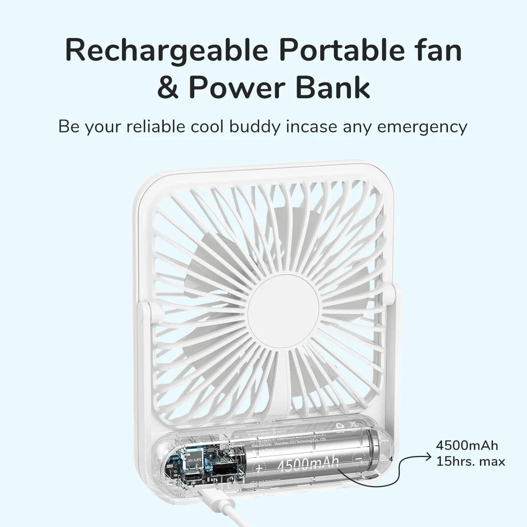 - Backup Battery: Be a rechargeable portable fan & power bank