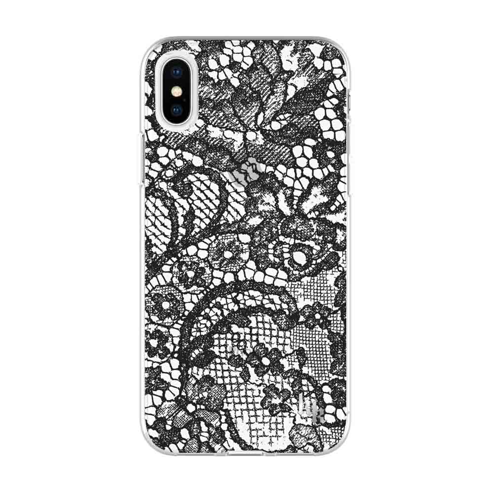 KENDALL + KYLIE Protective Printed Case for iPhone X – Lace Print Black Foil/Translucent Black: