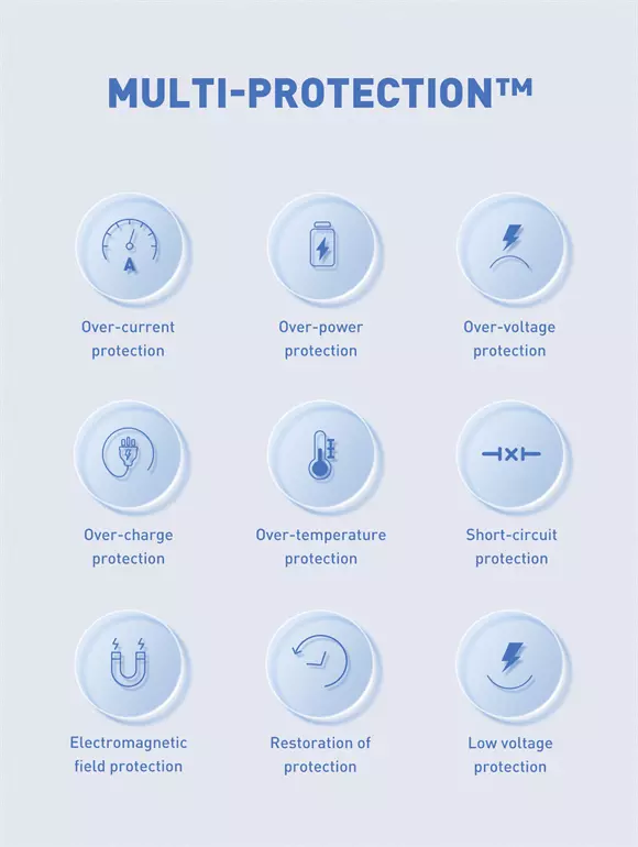 High grade fire-proof PC material, 9 multi-protection, safe to use.