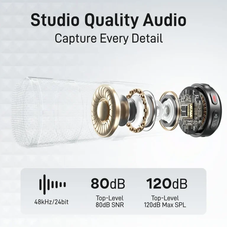 Studio-Grade Audio Quality: WAVE T5 delivers the industry’s best 80dB signal-to-noise ratio, 120dB maximum sound pressure level, and 48kHz/24-bit audio format, capturing subtle sound details in various environments with low noise floor.