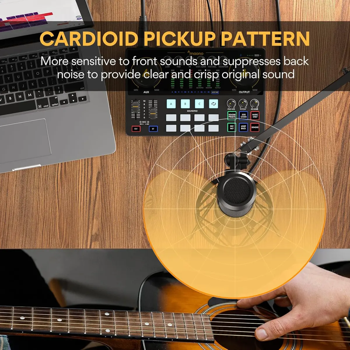 PM320 Studio Microhpne can capture any audible sound naturally and engagingly. From the recording of the drum to the string instrument, it is always an ideal choice.MOANO PM320S XLR Microphone For StudioWhether it’s big-time broadcasting, professional podcasts or critical studio recordings, this powerful condenser microphone delivers smooth, warm vocals every time. The Maono PM320 XLR microphone captures and enhances the finer details of the human voice.Notice:
