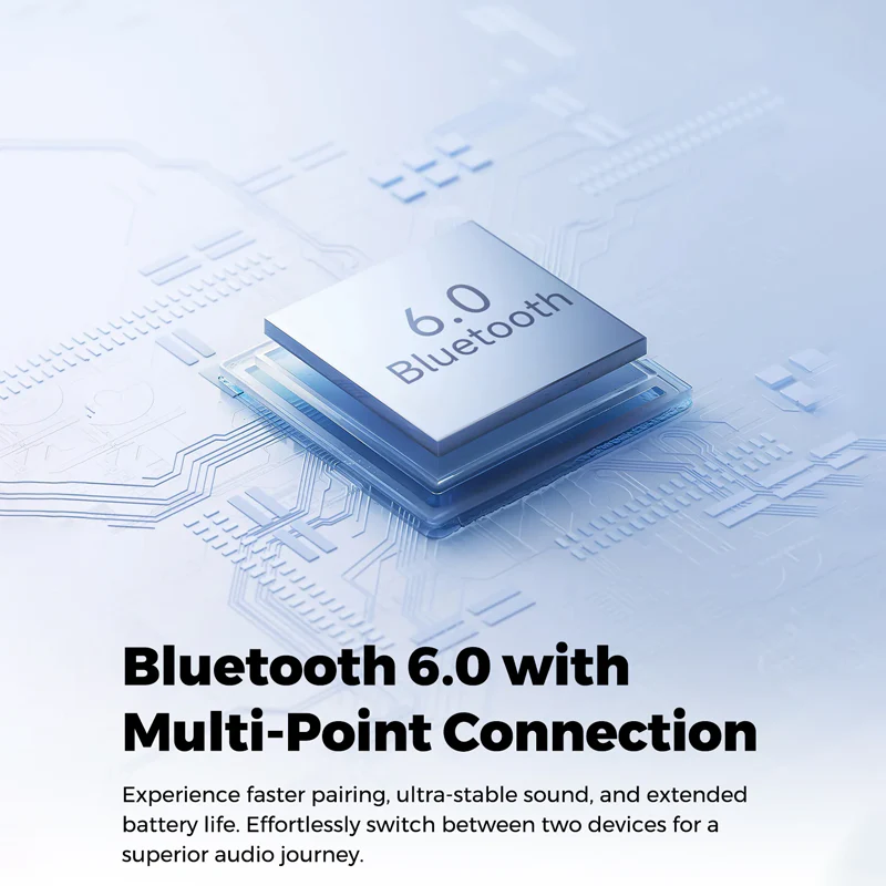 Bluetooth 6.0 – Multi-device connection, stable and fast