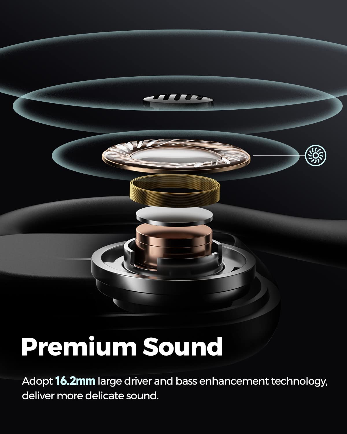 - 【Powerful Sound and Stable Connection】- Featuring the latest low-frequency enhancement technology and Bluetooth 5.3 transmission, the headphone offers a seamless audio experience with a significant reduction in distortion and enhanced sound quality. The built-in 16.2mm driver improves the sound further, delivering even more powerful bass for a truly immersive audio experience.