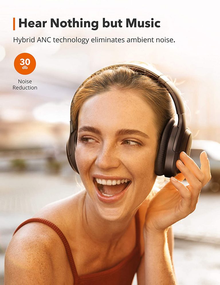 Hybrid active noise cancellation technology with feed-forward and feedback ANC to reduce ambient noise up to 30dB for full music immersion. Turn on the ANC switch hear nothing but music– even in noisy environments such as in an office café train etc