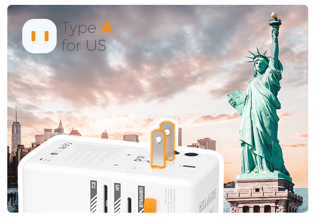 Whether you need a European plug adapter, UK, US, or AU compatibility — this universal plug adapter has you covered in 150+ countries. With a stunning 100W USB-C output, it easily charges MacBooks, gaming laptops, tablets, smartphones, and more — faster than ever.