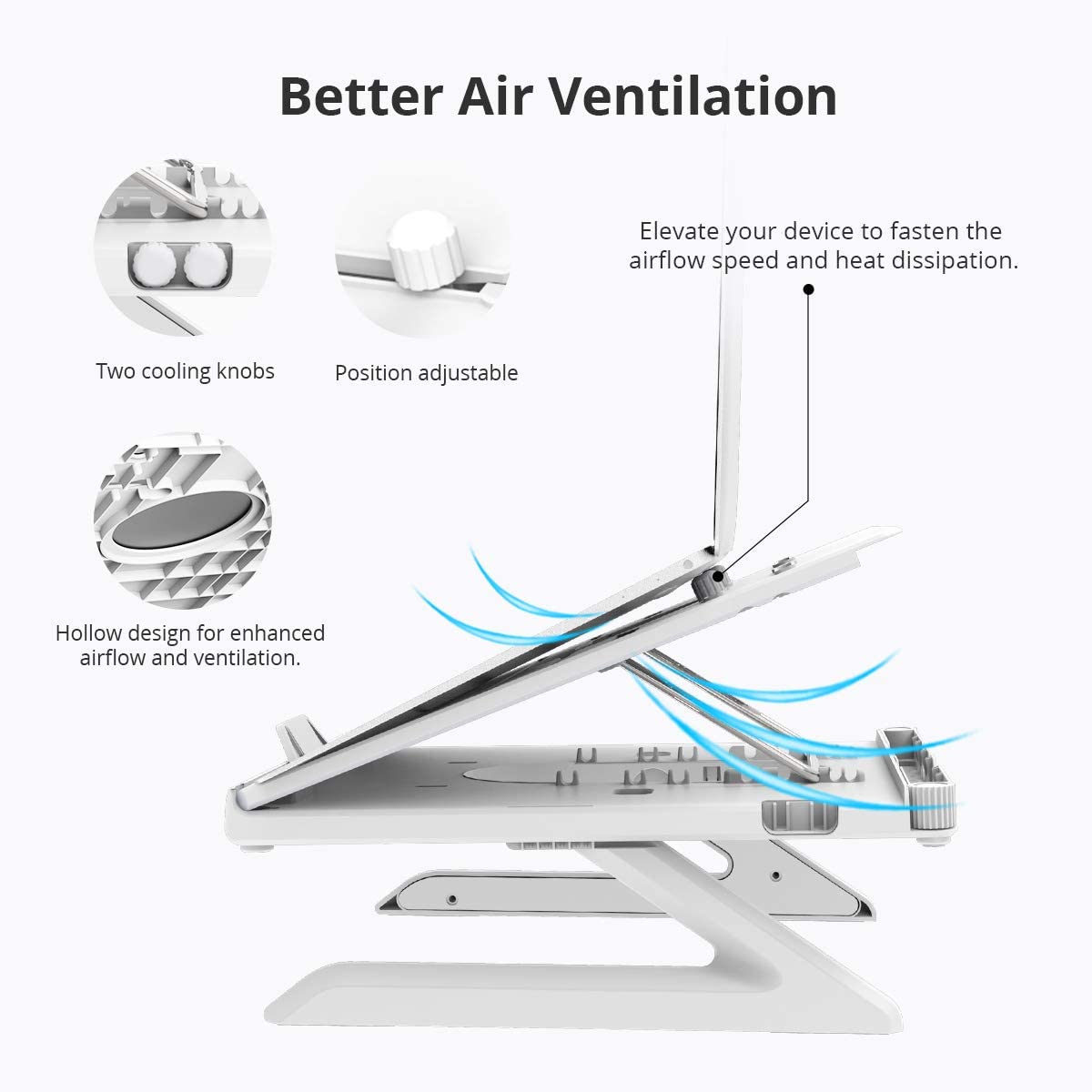 Adjustable laptop stand is made of high-quality & lightweight ABS materials, compatible with all laptops 10-17 inches and durable enough to support up to 22 lbs (10 kg). It’s sturdy and durable to keep your laptop in place securely.