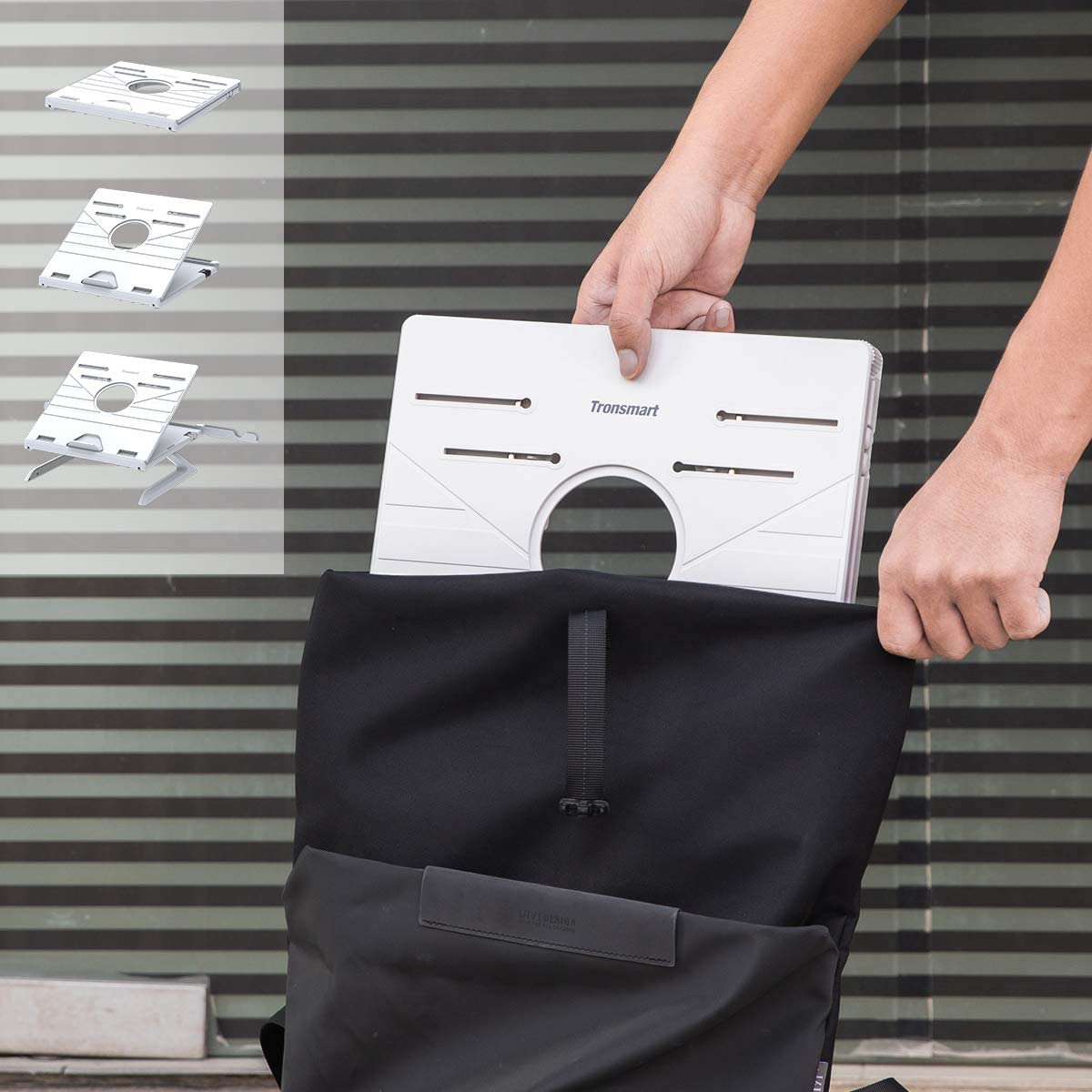 Tronsmart D07 Foldable Adjustable Laptop Riser with Phone Holders, Compatible with 10 to 17-in Laptops, Tablets – White