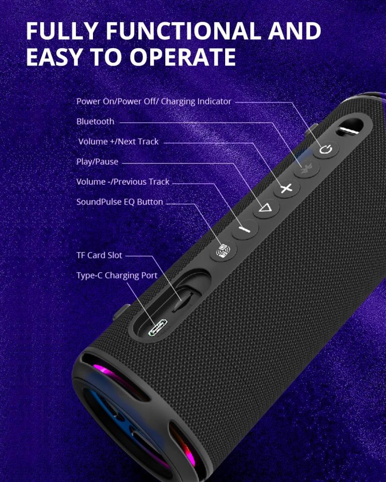 - IPX7 WATERPROOF DURABLE FABRIC This wireless Bluetooth speaker is rain, splash, and splash resistant, and can even be submerged in 3.3 feet of water for up to 30 minutes. Plus, the durable fabric material and sturdy rubber cover protect the speaker during your outdoor adventures. Great for family gatherings or pool parties, beach parties, BBQs, biking, hiking, camping, and more