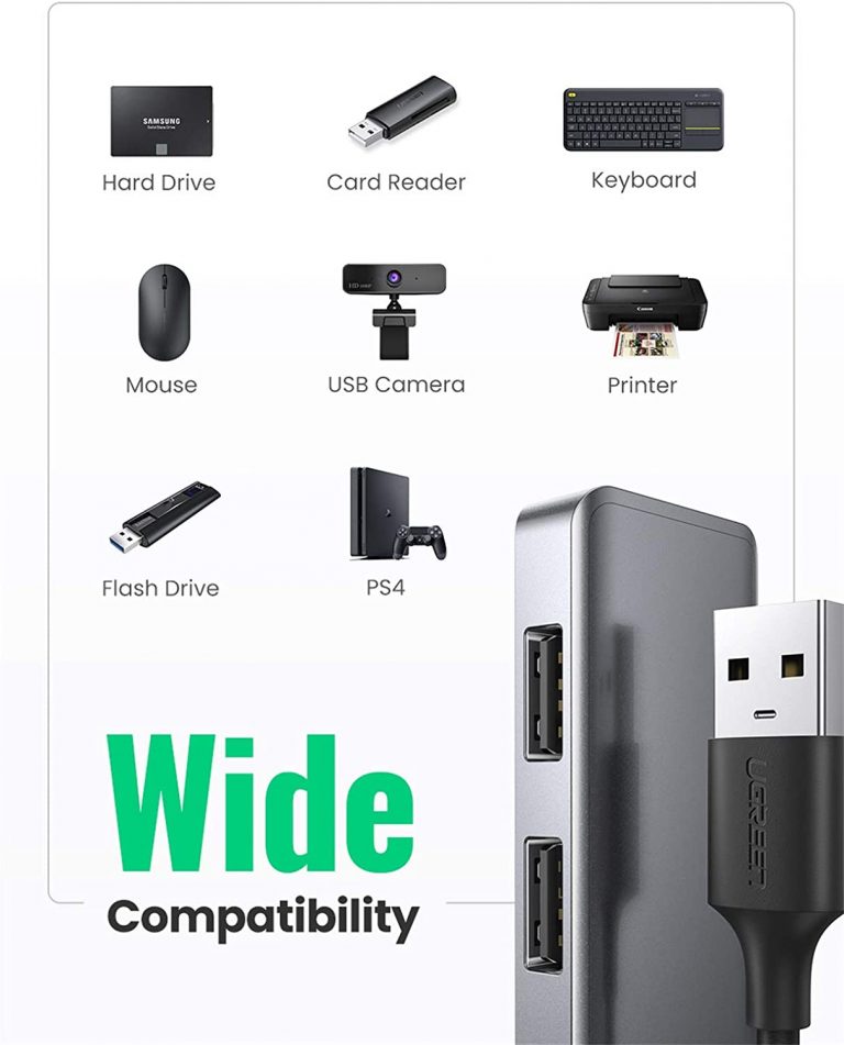 - USB Hub 3.0: UGREEN 4-Port USB 3.0 Hub simply helps you to connect up to 4 USB devices to your PC or Laptop, such as external hard drives, USB flash drives, mouse, keyboard, USB headphone, speakers, memory cards, keyboard, mouse and much more USB devices etc. It keeps you away from the trouble of plugging& unplugging repeatly.