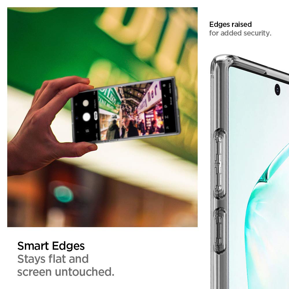 Spigen ULTRA HYBRID case for the Samsung Galaxy Note 10 Plus is the optimum case for lasting clarity with defense. It allows you to experience Hybrid Technology that packs advanced drop protection in a single layer. As the only True One-Piece Hybrid case, it is a Full Enclosure case – which is a perfect blend of Soft shock-absorbent TPU bumper covering sides of the phone fused on to a Hard Transparent Back Panel to provide long lasting clarity and a great Grip. The clear back panel stays clean and clear Without yellowing over time in order to conspicuously display the device in its Slim Grandeur. The Ultra Hybrid is best at displaying your Samsung Galaxy Note 10 through its Crystal Clear back while with durability. Corners are guarded with Air Cushion Technology that takes all the shock from everyday impact. Add personality while flaunting the look of the original device through its crystal clear back.