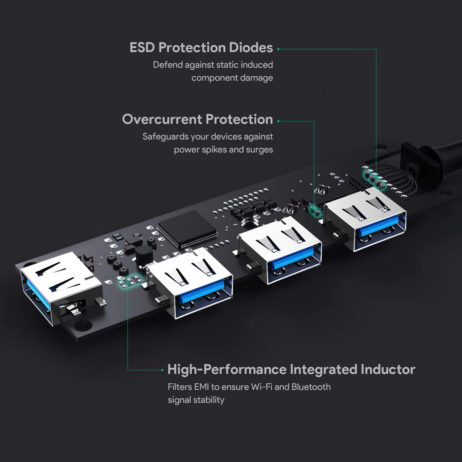 Reliable ProtectionBuilt-in safeguards protect all connected devices against EMI & ESD. |