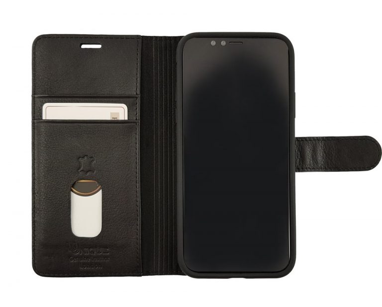 Uunique iPhone X/Xs Protective Original Genuine Leather Folio Wallet Black